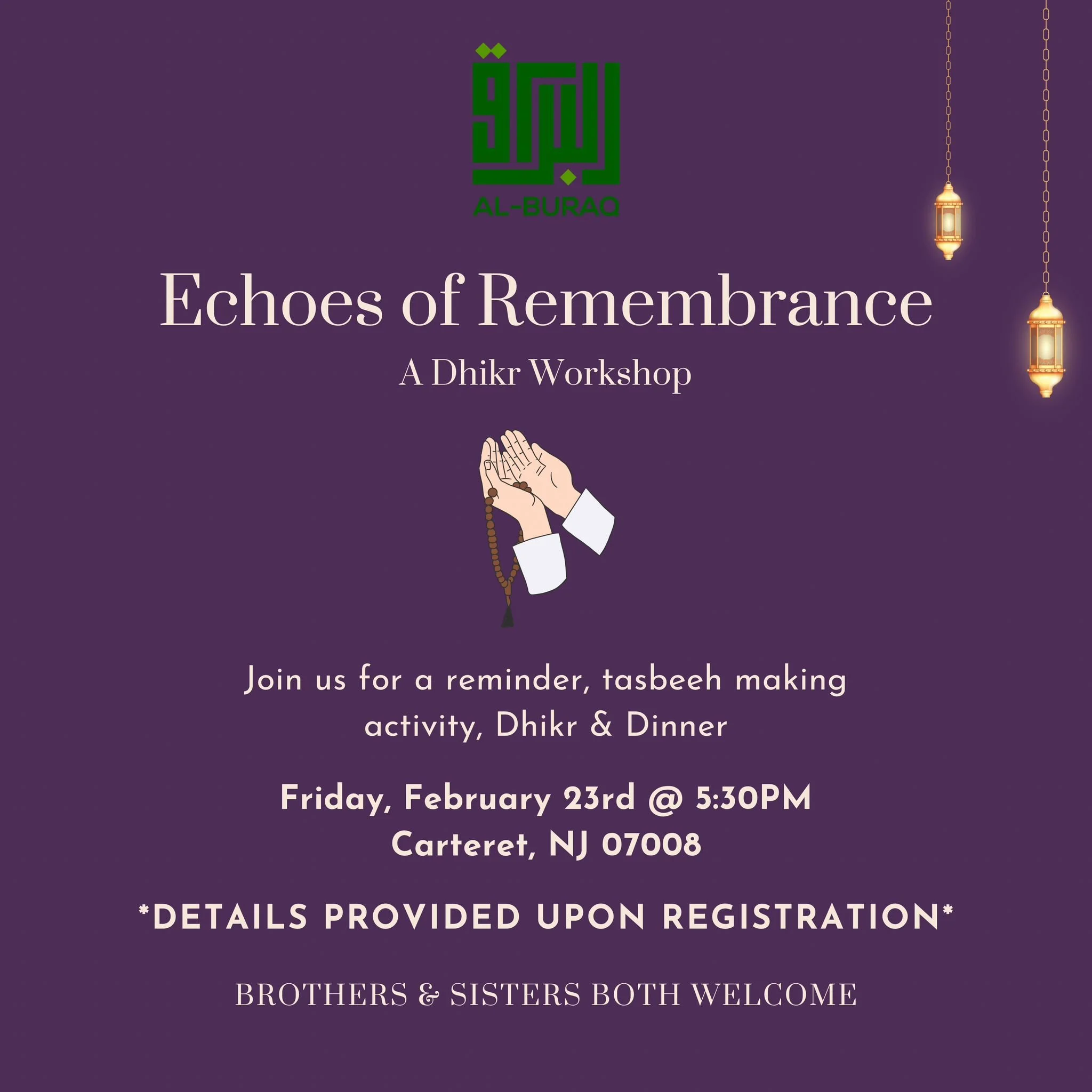 Come join us on Friday, February 23rd at 5:30 PM for a Dhikr Workshop led by Imam Bilal Khan. Dive into a reminder on the beautiful practice of remembrance of Allah, followed by a Tasbeeh crafting session, engaging dhikr, and dinner. This event welcomes both brothers and sisters!
